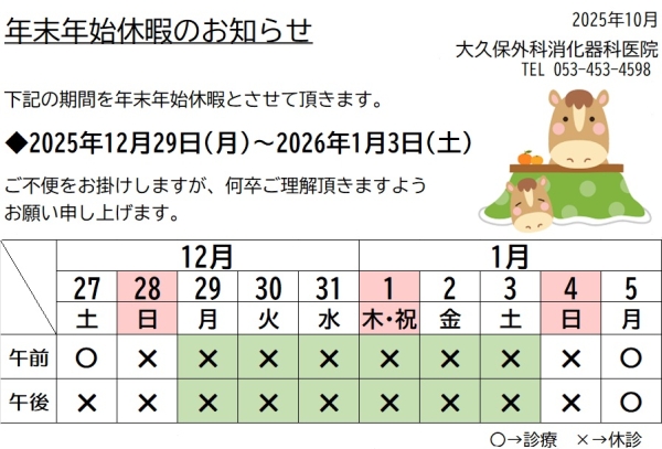年末年始休診のお知らせ